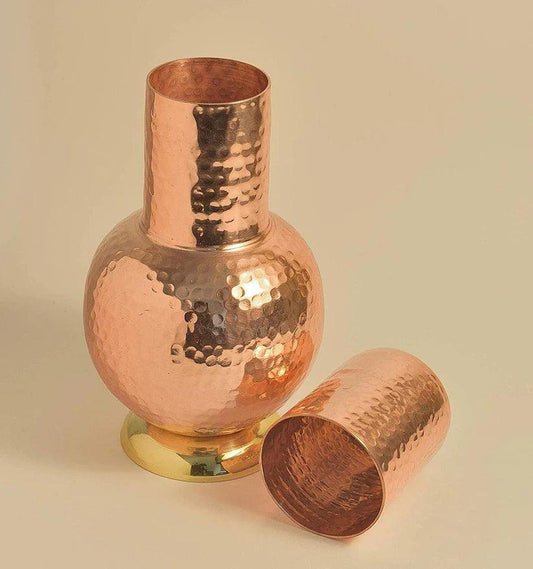Treasure Exports Hammered Surai Design Bedroom Water Copper Bottle with Inbuilt Glass 1200 ml Set of 1 (Brown)