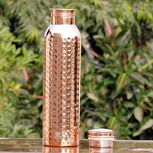 Treasure Hammered copper water bottle 1 litre copper water bottle with hammered design