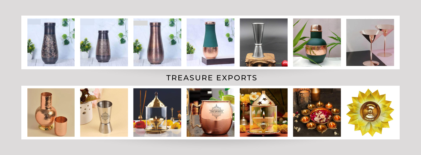 While the concept of storing water in a copper water bottle & copper water pot or other copper vessels arose centuries ago, Treasure Exports has made a revolution in copper and brass ware products, ruling the home and kitchen category whilst offering a versatile range along with home décor items as well.