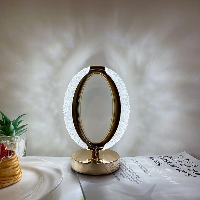 Treasure USB Rechargeable Crystal Table Lamp Oval Shaped - Decorative Crystal 3 Colors Changing Led Crystal Bedside Modern Lamp for Home,Bedroom,Party Dinner Decor